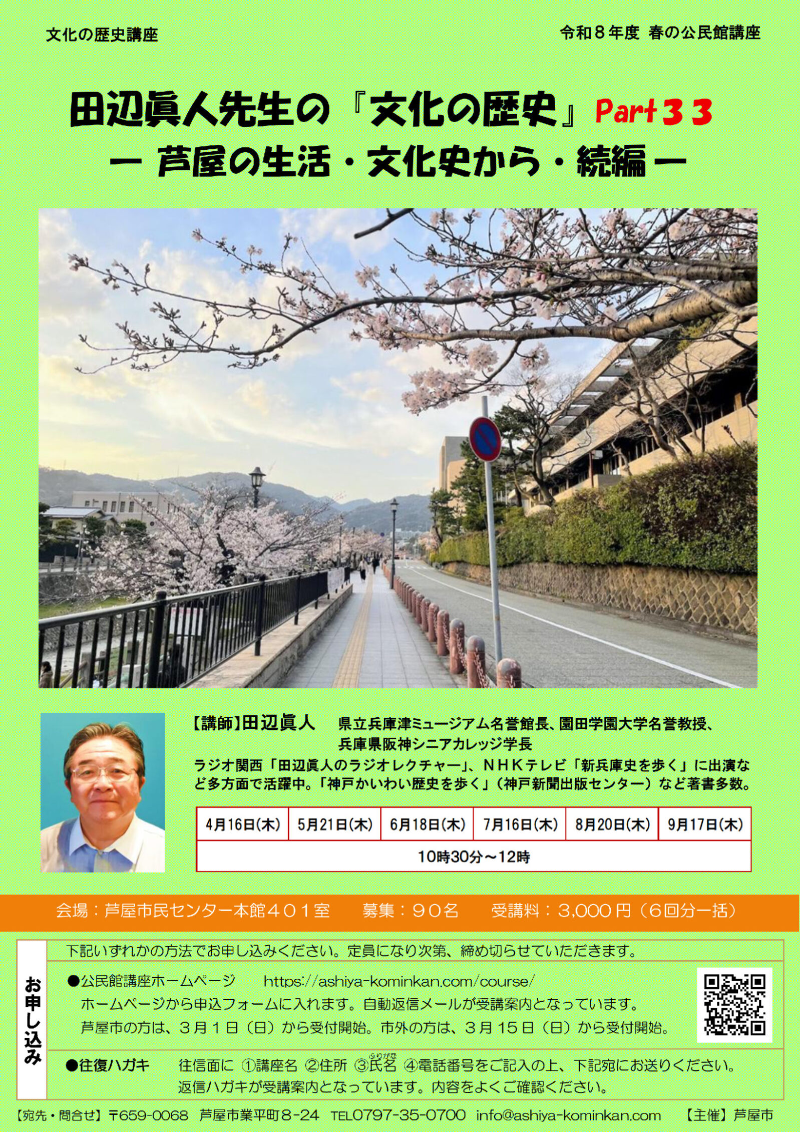 2026年度 春の公民館講座 田辺眞人先生の「文化の歴史」Part33 開講