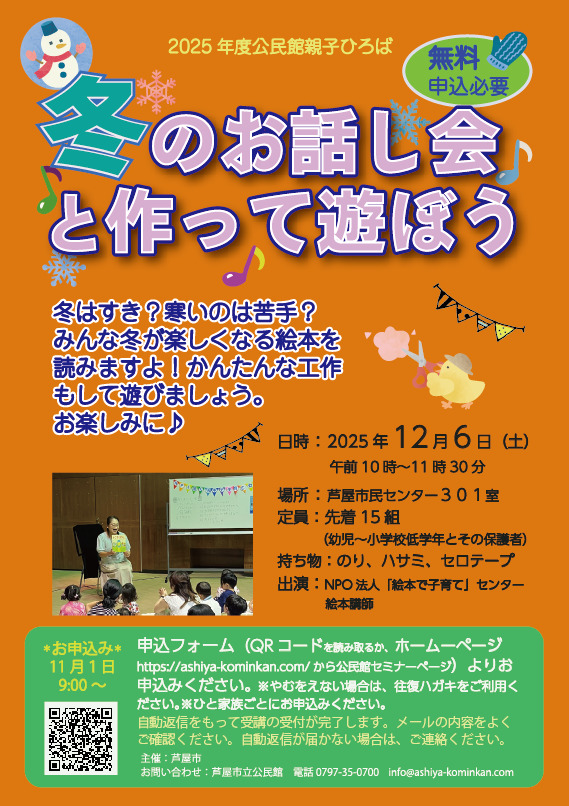定員:先着15組(幼児~小学生低学年とその保護者)
