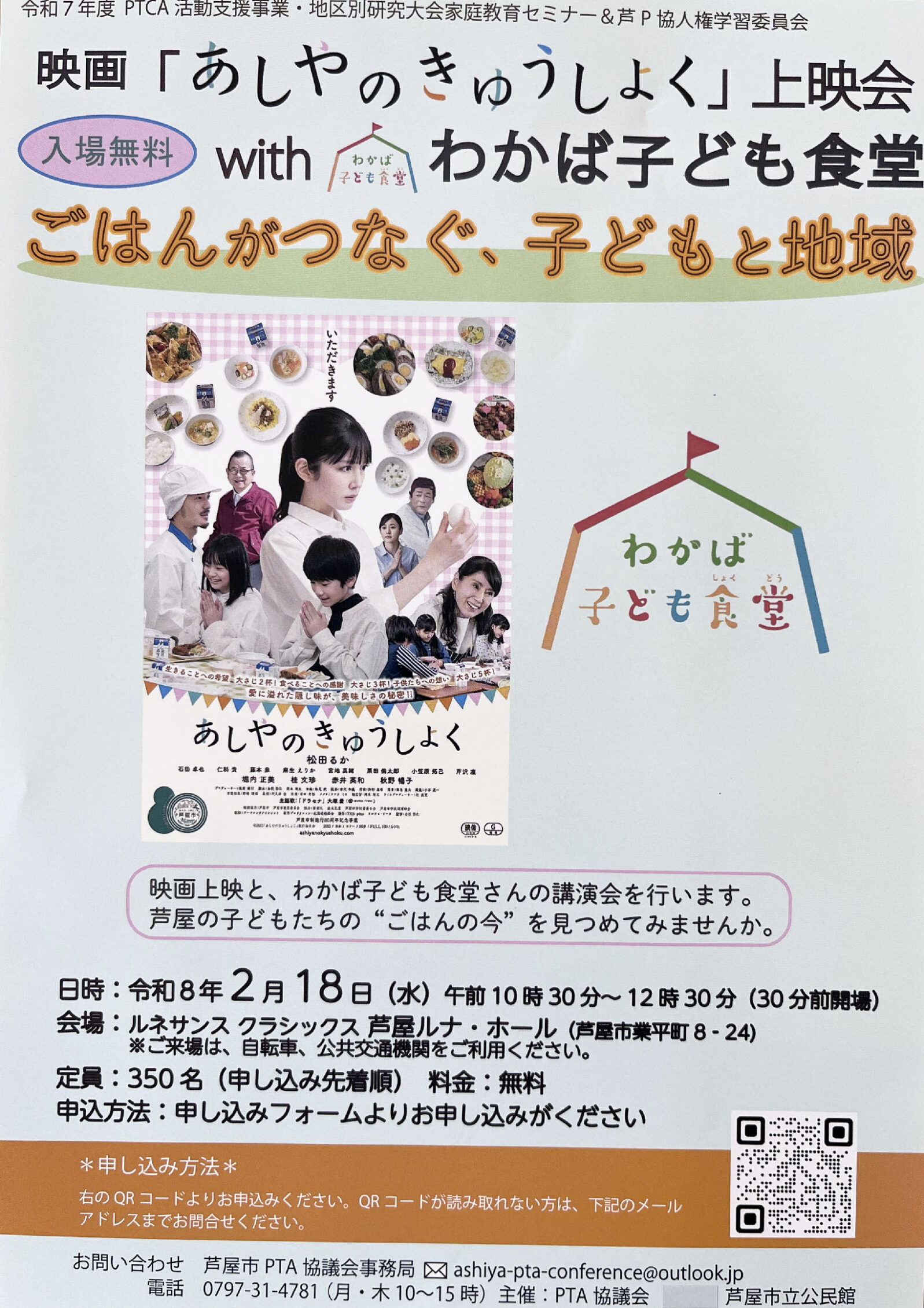 映画上映と、わかば子ども食堂さんの講演会を行います。