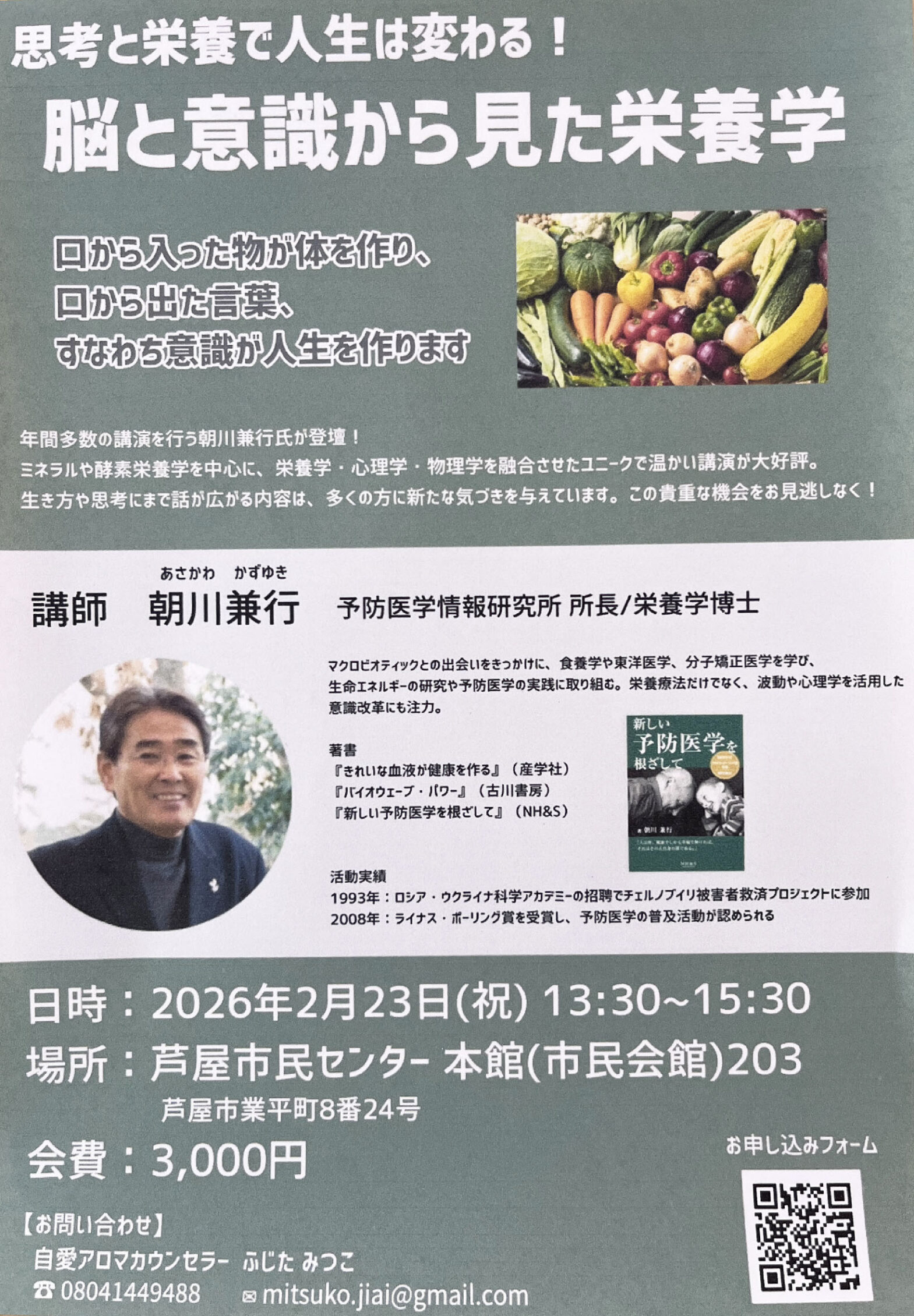 すなわち意識が人生を作ります。年間多数の講演を行う朝川兼行氏が登壇!