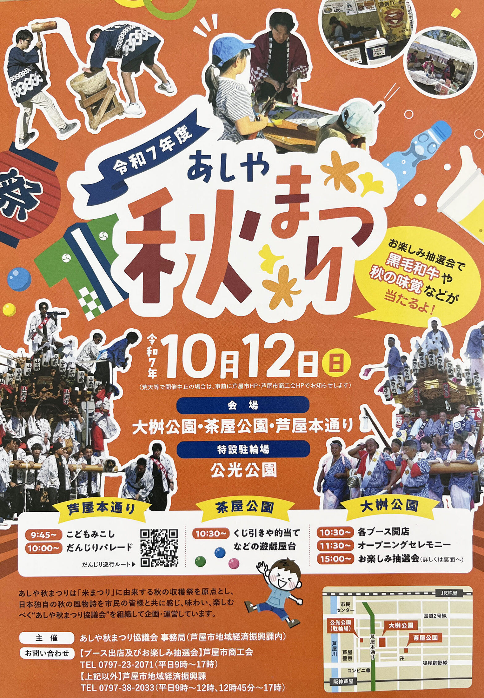 お楽しみ抽選会は大桝公園の本部テントで14:30までに抽選ボックスに投函してください。