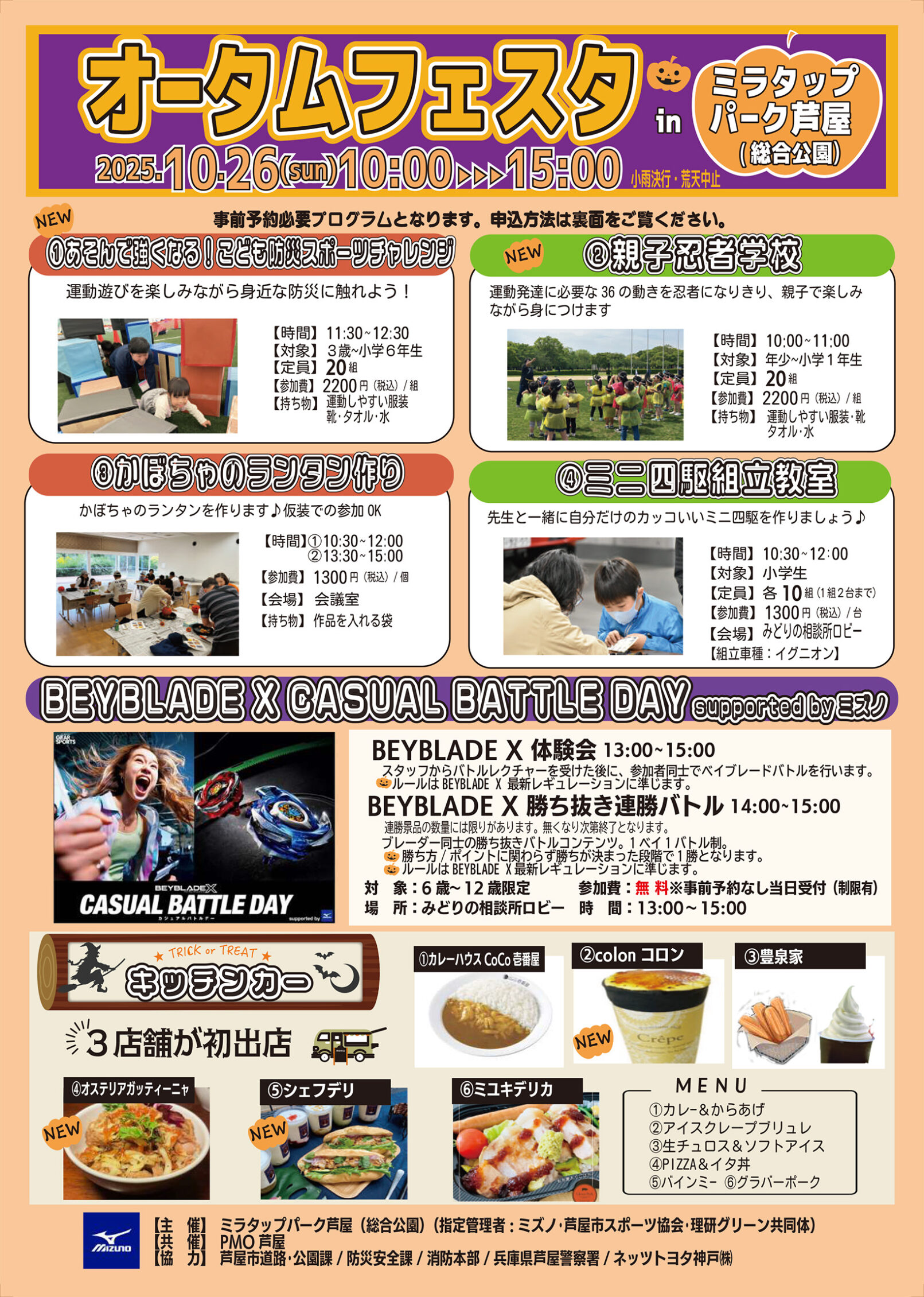 主催:ミラタップパーク芦屋(総合公園)、(指定管理者 ミズノ、芦屋市スポーツ協会・理研グリーン共同体