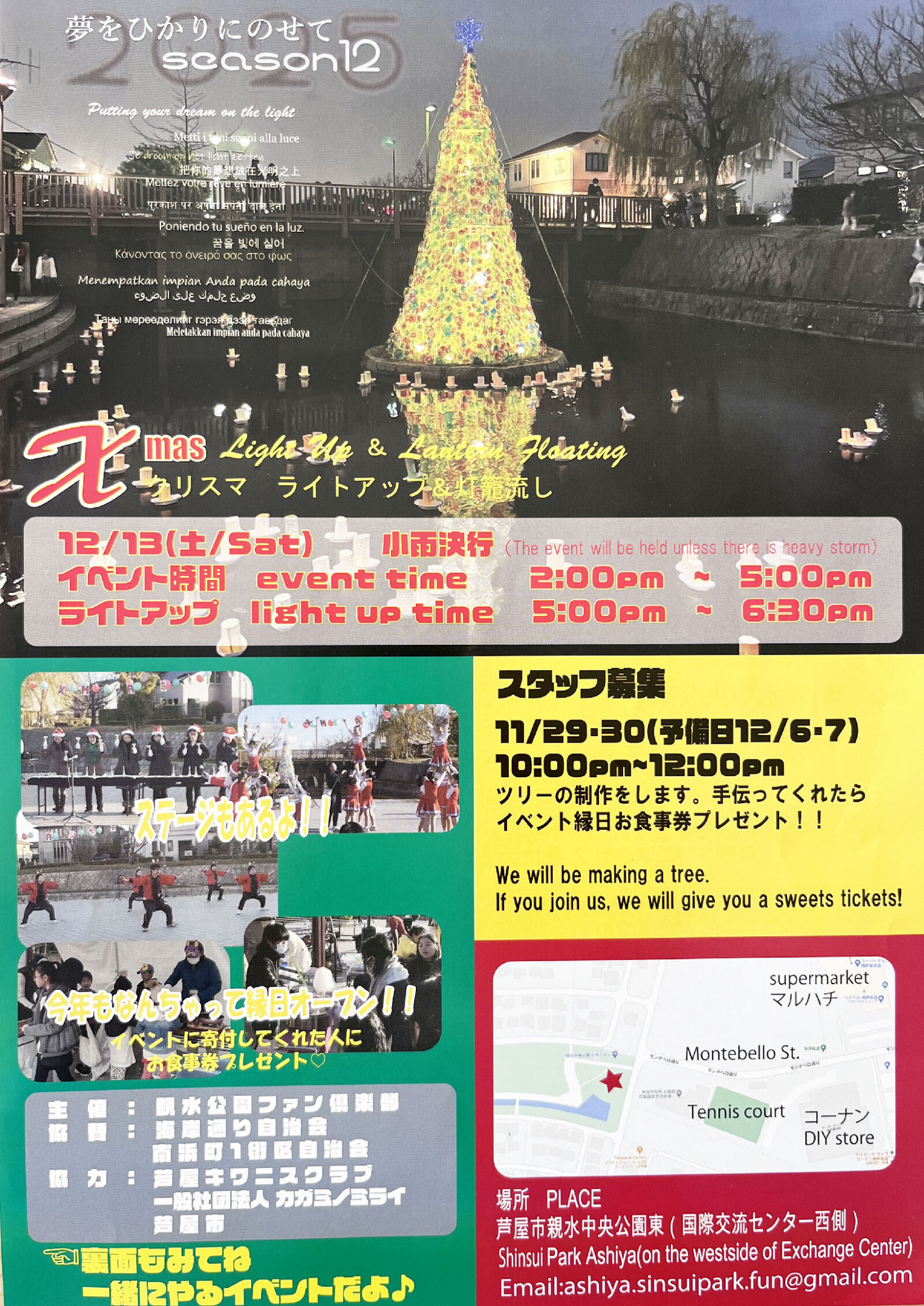 日時:2025年12月13日(土) 灯篭流し:14:00~17:00 点灯式:17:00~