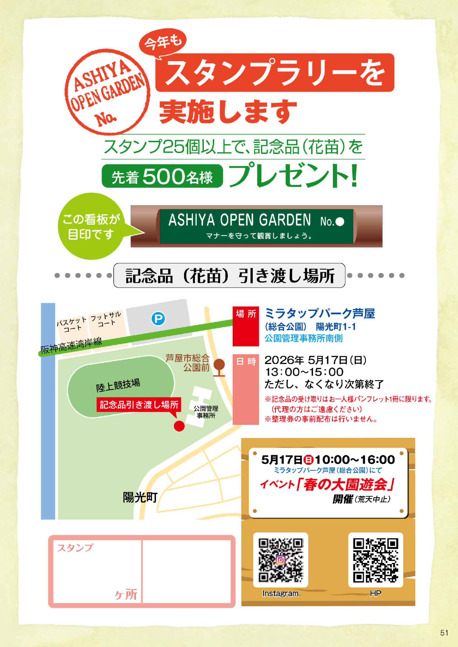 スタンプラリーもあるので、春の芦屋を楽しみましょう!!