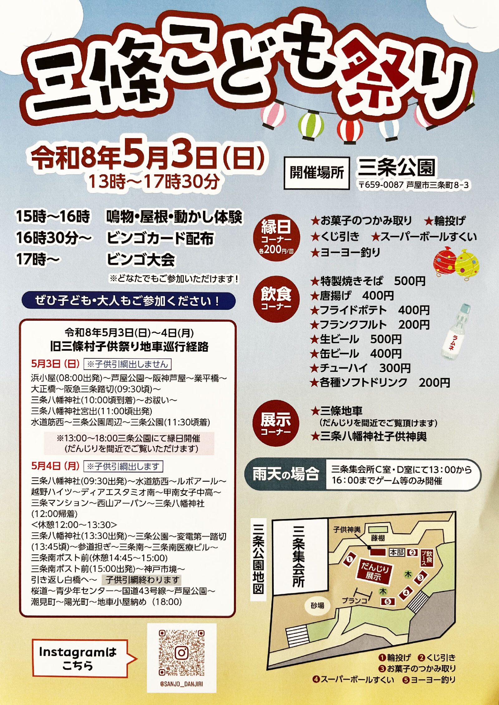 雨天の場合:三条集会所C室・D室にて13:00から16:00まで、ゲーム等のみ開催