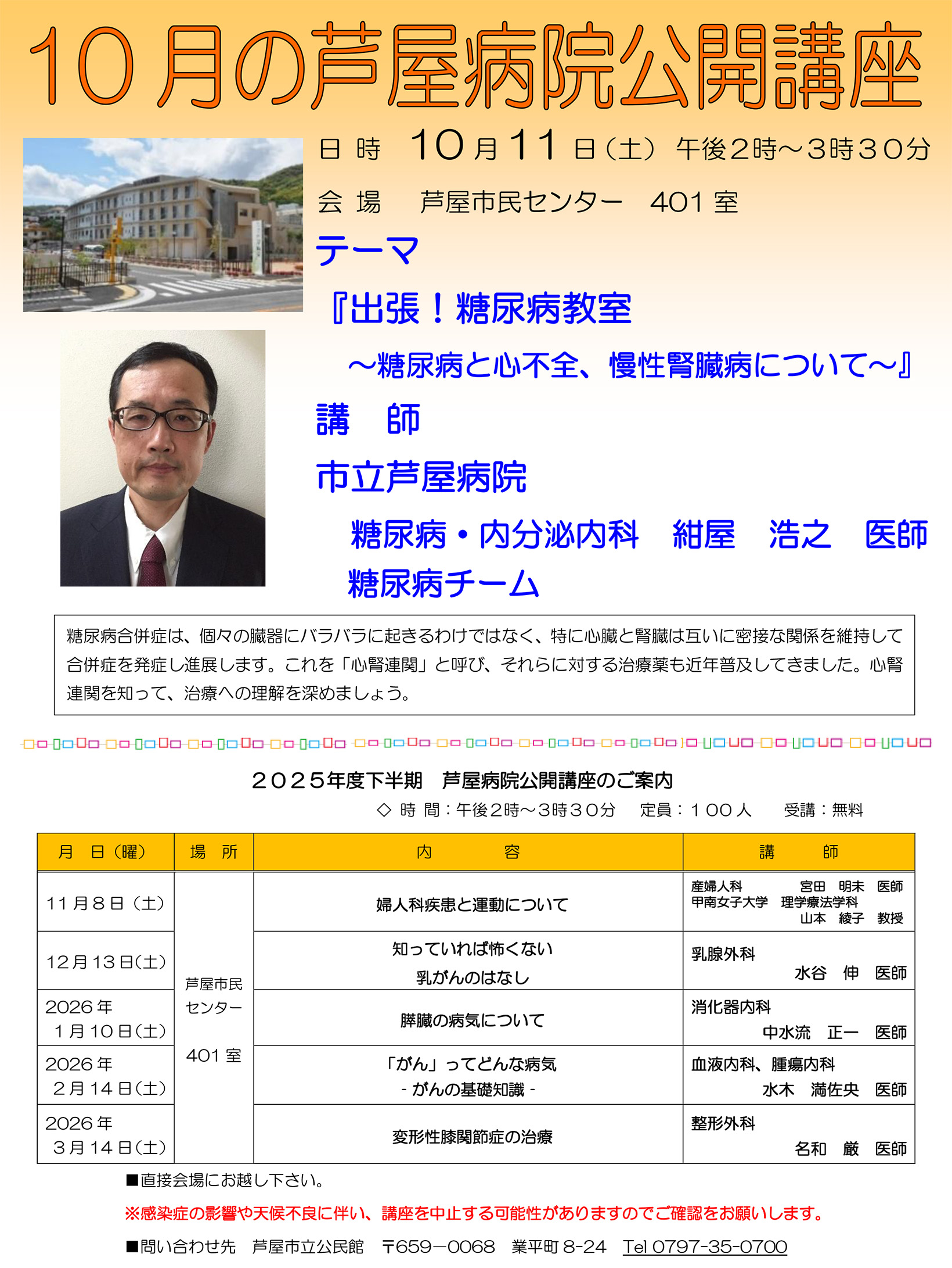 2025年10月11日 10月の芦屋病院公開講座 「出張!糖尿病教室 ~糖尿病と心不全、慢性腎臓病について~」